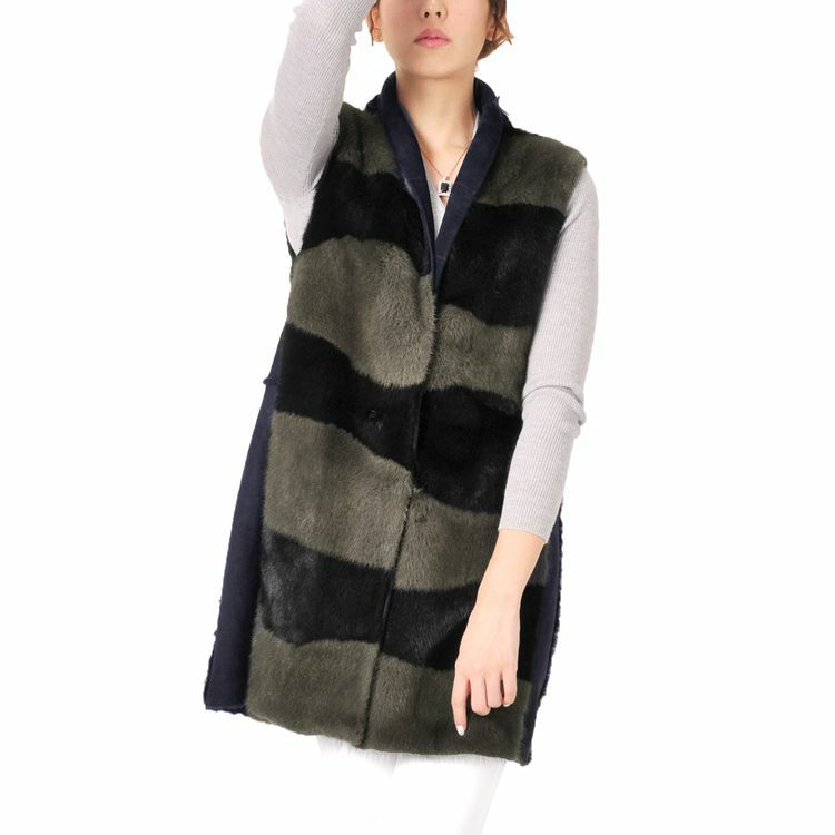 ミンク & ムートン ベスト ダブルフェイス 着丈85cm / レディース 7F