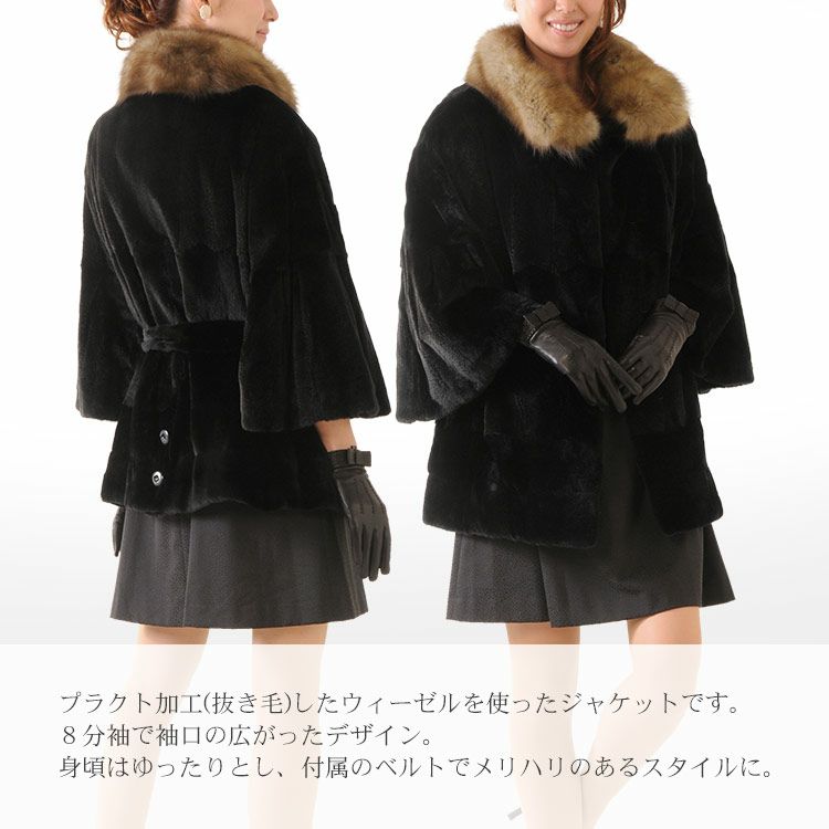 ウィーゼル ギャザー ジャケット ブラック 高級ミンクのBIGセール 7F