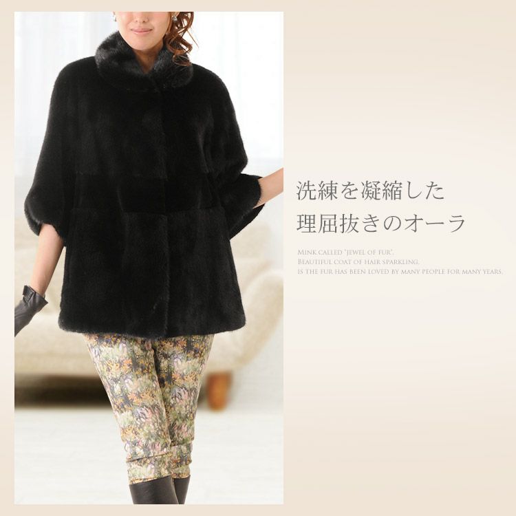 ブラック ミンク ケープ ジャケット ZF