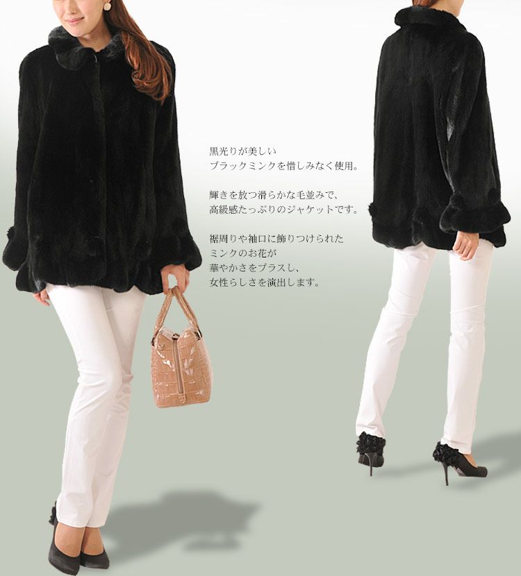 ブラックミンク ジャケット フラワーデザイン 7F