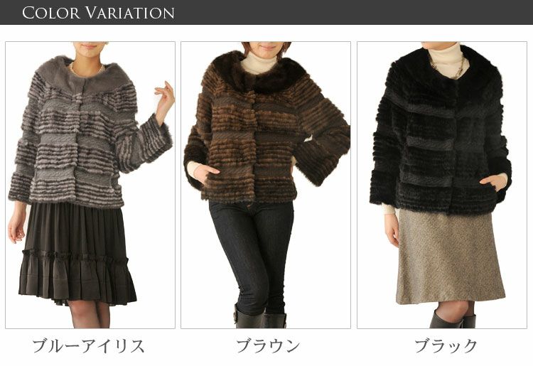 ブラック ミンク ノーカラー ジャケット レディース (01000202r) 7F