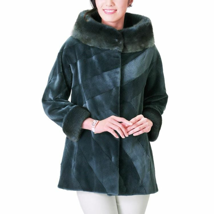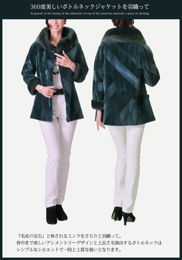 【1点限り】 シェアード ミンク ジャケット ボトルネックデザイン 着丈67cm / レディース 7F