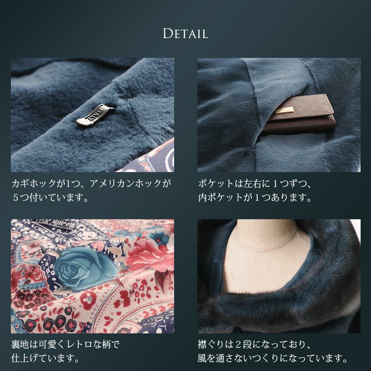 | 素材 | 毛皮:ミンク 裏地:ポリエステル100% |