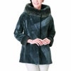 | 商品名:ミンク ジャケット シェアード加工 ノーマル ミンク トリミング ボトルネック アシンメトリー 着丈67cm ブルー / レディース |