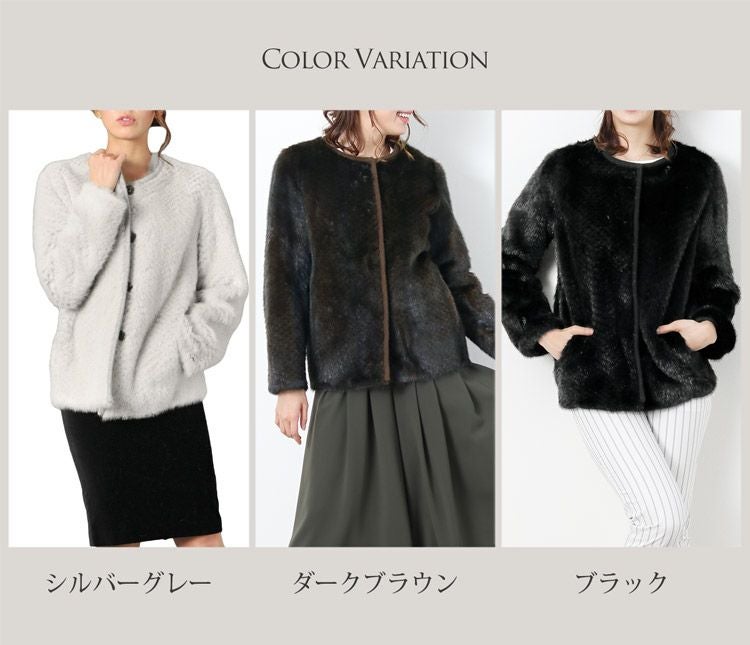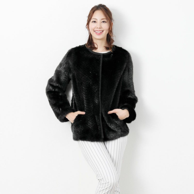 画像を見ると、白い毛が混ざっているようなので実際見るまで気になっていましたが、とても美しい毛並みで艶もあり白い毛は見当たりませんでした。とても素敵で気に入ったのですが、下に厚地でなはいですがセーターを着たせいか、サイズが小さく感じました。ジャケットなので、コートのようにあまり余裕がある作りにはなっていないのは仕方ないですね。でも裏がニットで暖かいはずですよね。