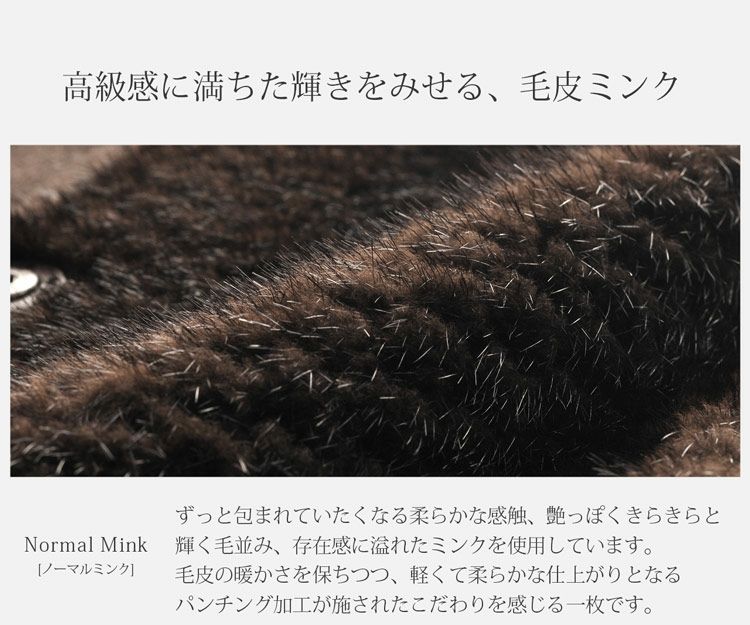 ずっと包まれていたくなる柔らかな感触、艶っぽくきらきらと輝く毛並み、存在感に溢れたミンクを使用しています。