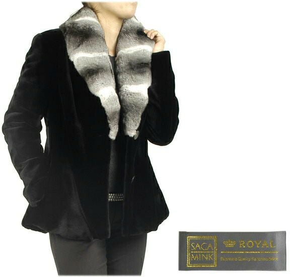 シェアードミンク ジャケット チンチラ襟 ミンクジャケット ブラックミンク 毛皮 ファージャケット 婦人 秋 冬 ギフト プレゼント ギフト