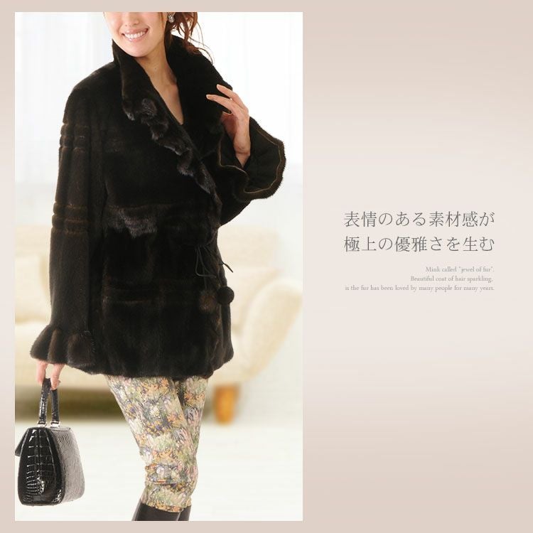 スカンブラック ミンク ジャケット リボンデザイン 7F
