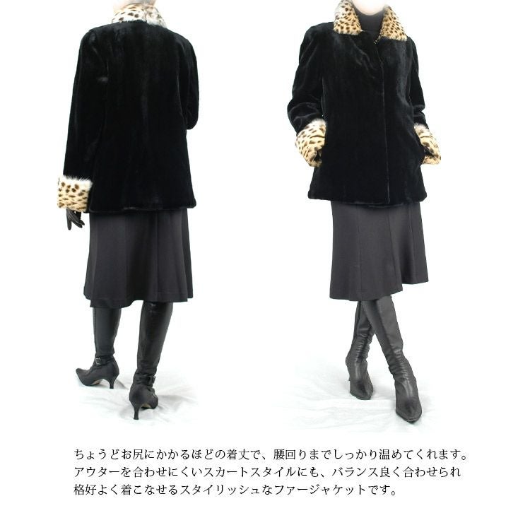 シェアード ミンク ジャケット レオパード キャット 衿袖 ファー 7F