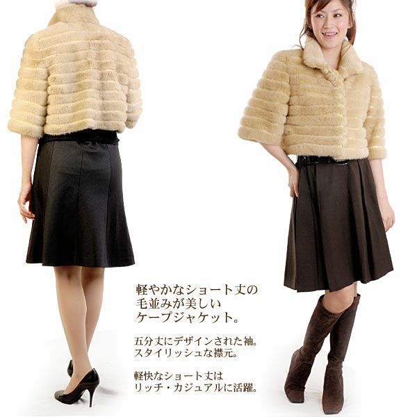 【訳あり】 セール パロミノミンク & ラムレザー ジャケット ショート丈 5分袖 ケープ風 7F