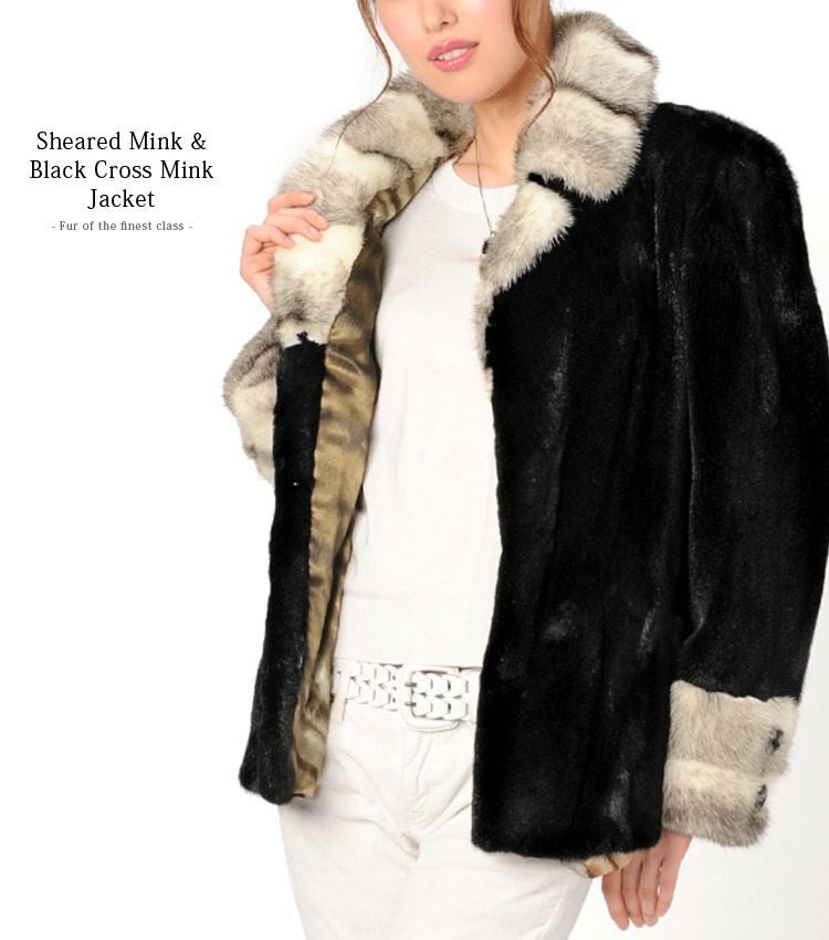 ミンク ジャケット シェアード加工 ブラッククロスミンク トリミング 着丈65cm/レディース 毛皮 ファー ミンクコート シェアードミンク シェアード ハーフコート ミンクトリミング秋 冬 プレゼント ギフト