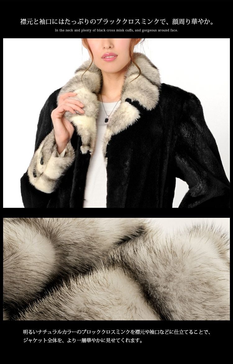 | 商品名:シェアード ミンク ジャケット ブラッククロスミンク トリミング 着丈65cm / レディース |
