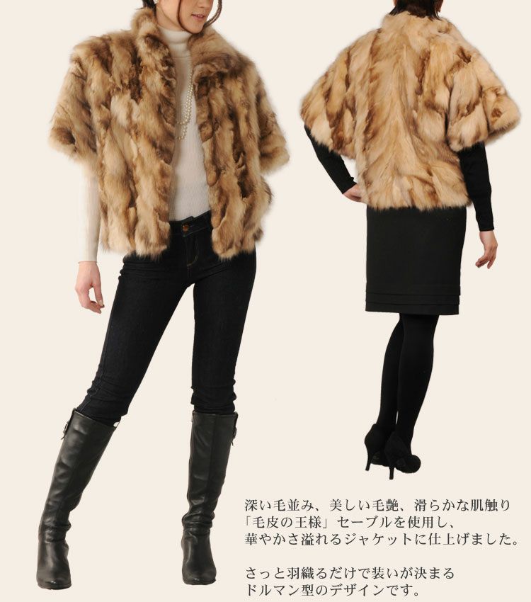 セーブル ジャケット ハーフスリーブ 半袖 女性用 リアルファー 毛皮 ファー 秋 冬 母 女性 プレゼント ギフト