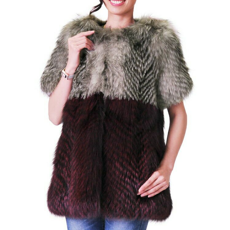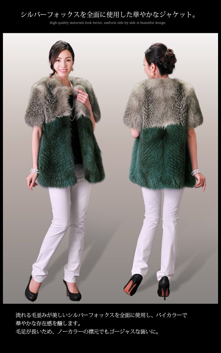 シルバーフォックス ファー ジャケット バイカラー 半袖 着丈70cm / レディース 7F