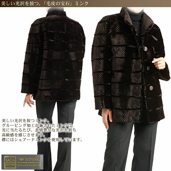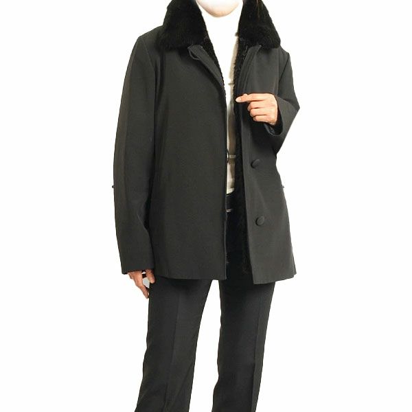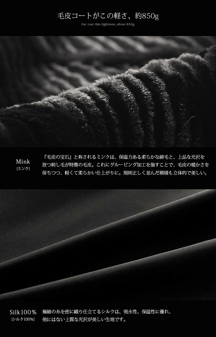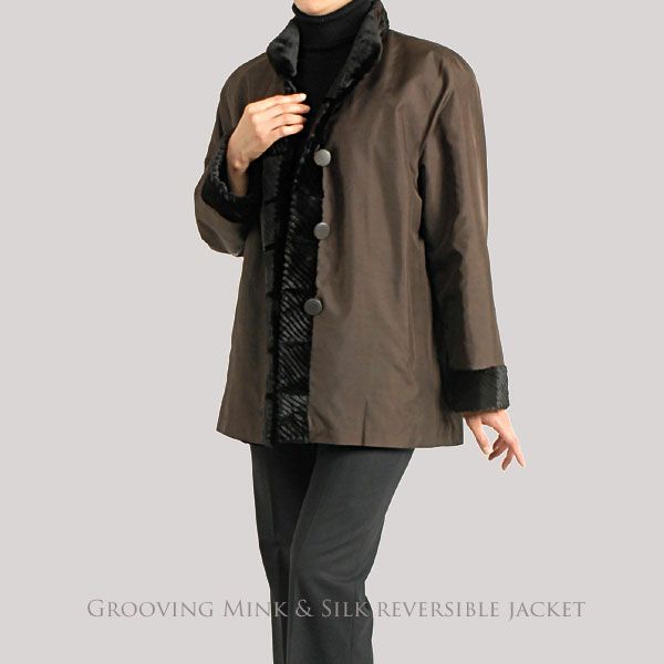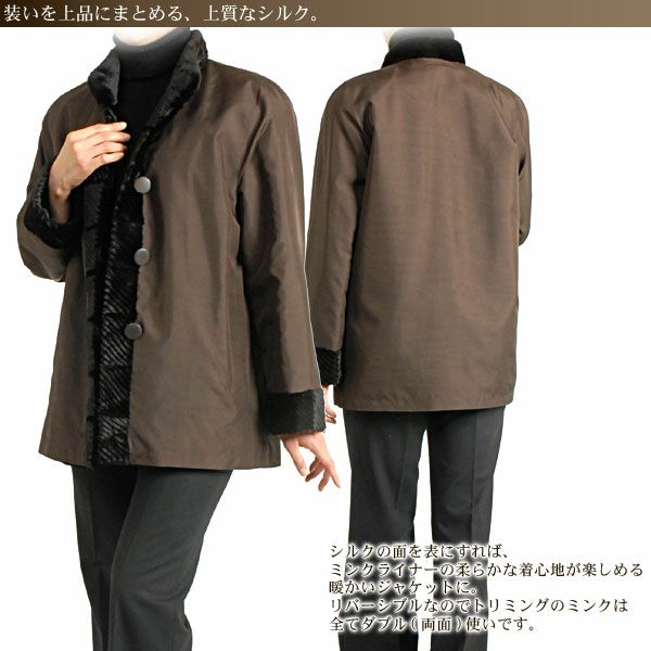 シルク100% & グルービング ミンク リバーシブル ジャケット 着丈70cm ブラック 7F