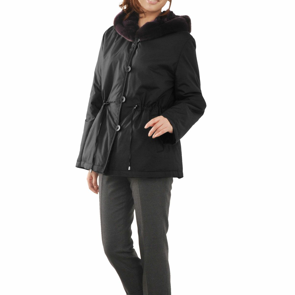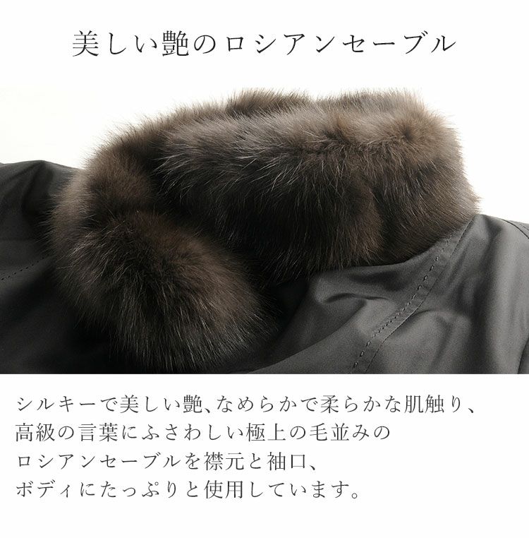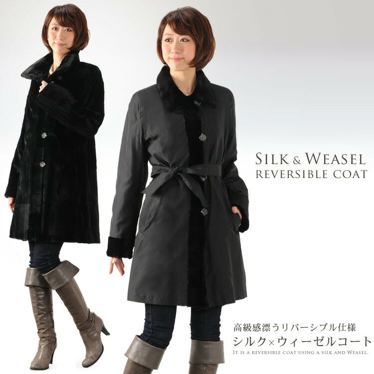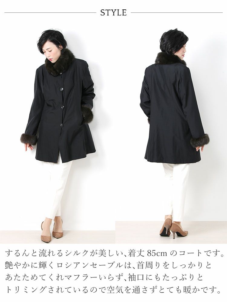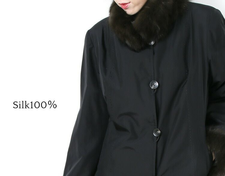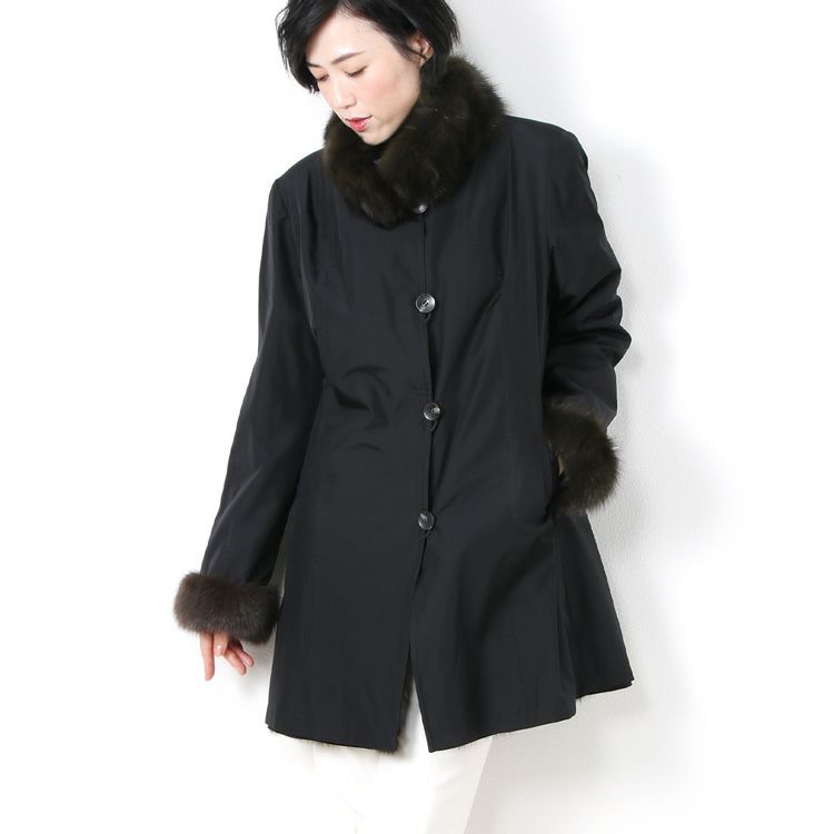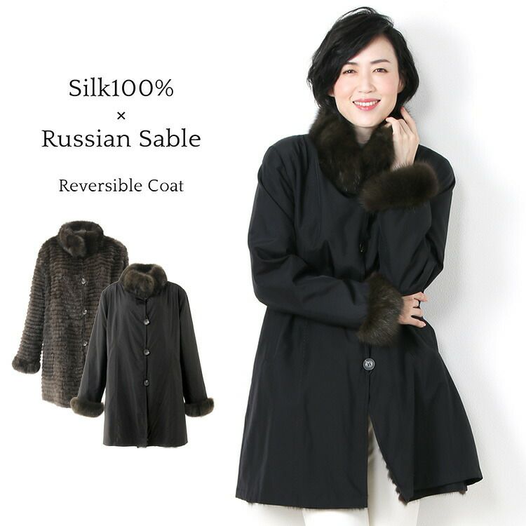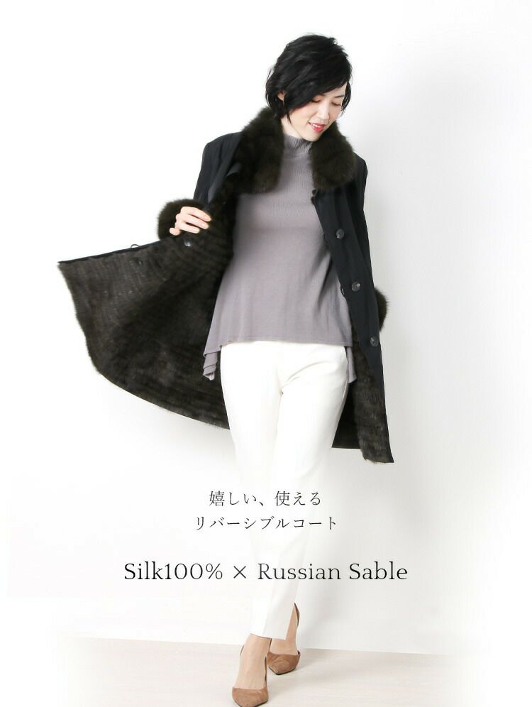 シルク & ロシアンセーブル コート リバーシブル 着丈85cm レディース ブラック 7F