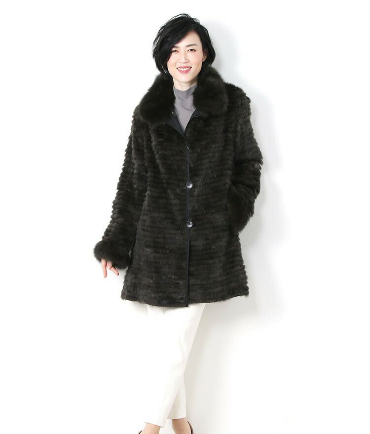 グルーピングミンク&シルクリバーシブルハーフコート ダークブラウン 7F