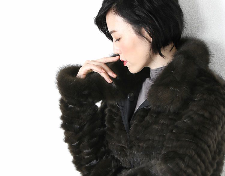 シルク100% & ウィーゼル リバーシブル ジャケット ロシアンセーブル ファー / レディース 7F