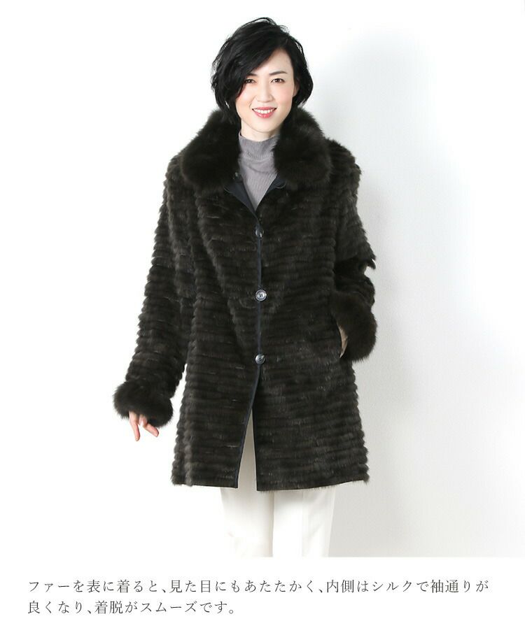 シェアードミンク シルク100% リバーシブルコート SAGA ミンク トリミング 7F