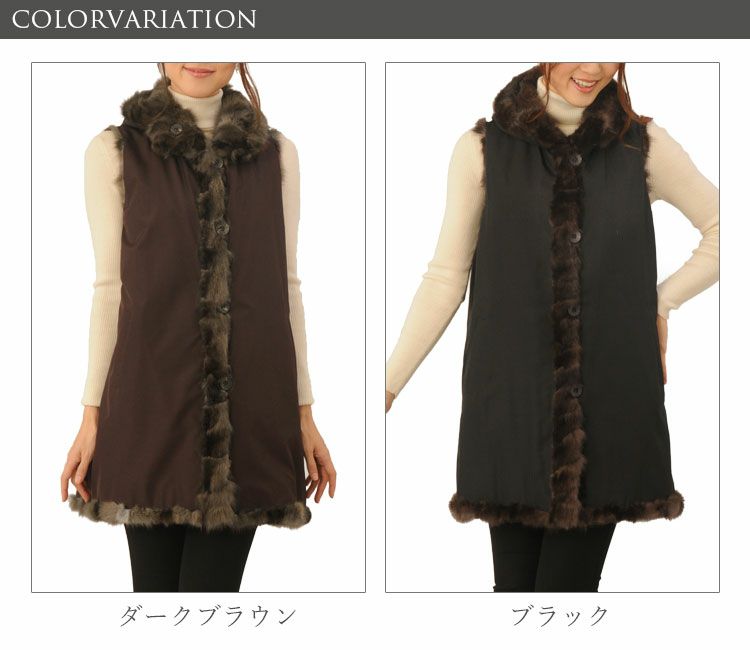 シルク100%&セーブル ロング ベスト リバーシブル フード付き 7F