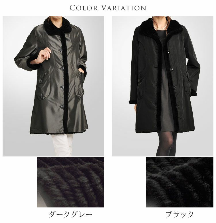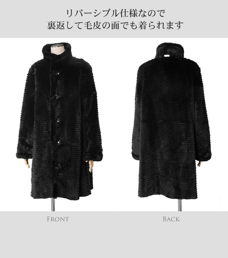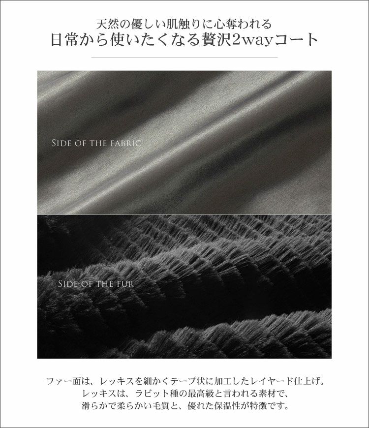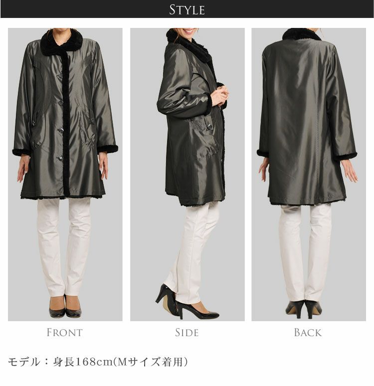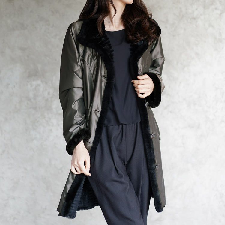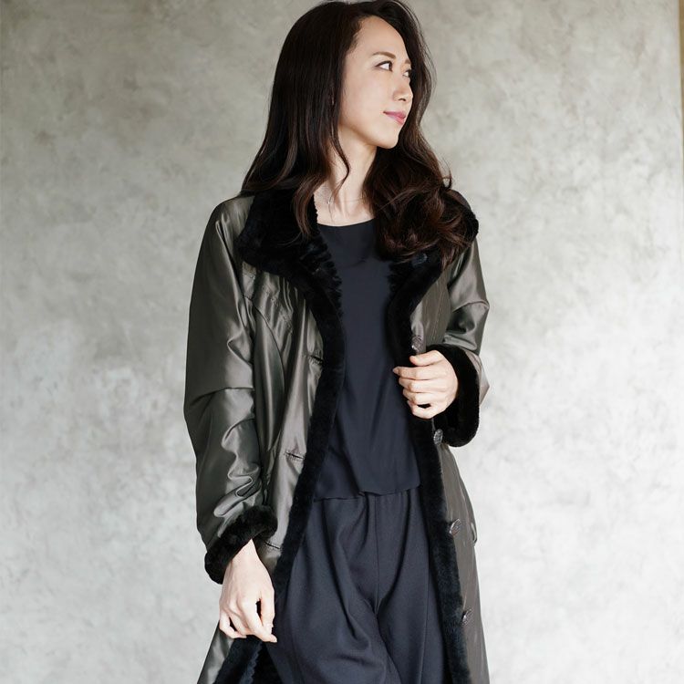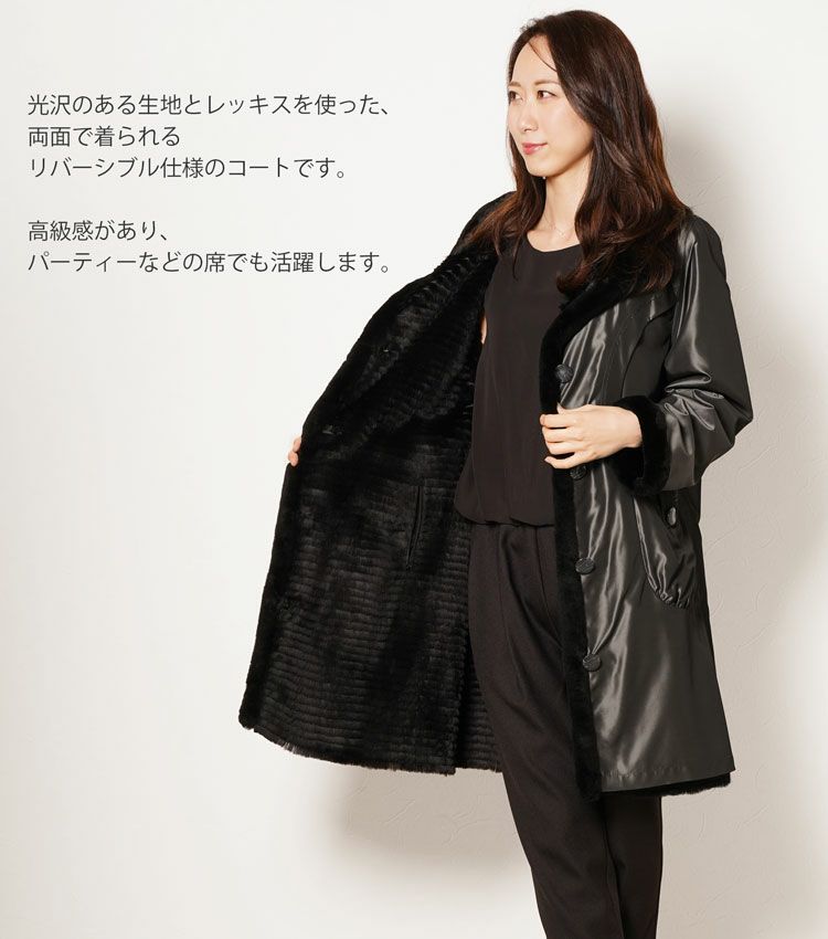 内側が毛皮で温もりのある着心地を約束してくれます。またリバーシブル仕様なので、幅広いシーンで使えるコスパの高いレディースコートです。大人の雰囲気をかもし出す、高級感ある装いを約束してくれます。
