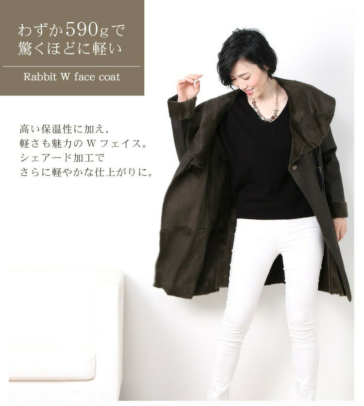 ラビット Wフェイス 軽量コート ビッグカラー / レディース 7F