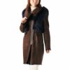 商品名:1点限り トスカーナ ムートン & シルバーフォックス コート Wフェイス ロング シェアード加工 着丈90cm ブルー ブラウン / レディース |