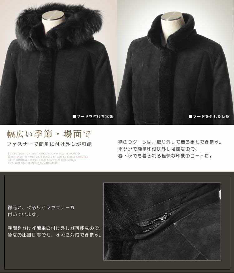| 商品名:ムートン コート Wフェイス フード付き ラクーン トリミング / レディース |