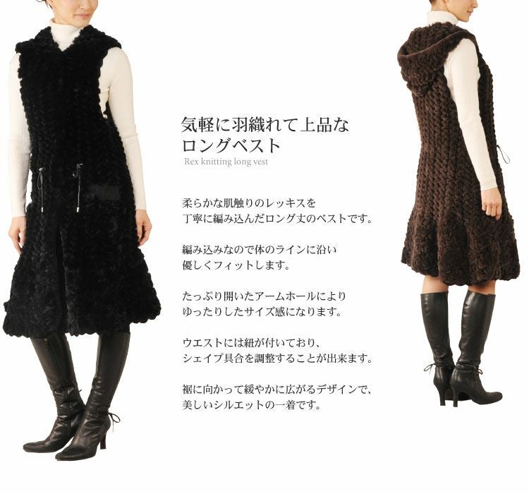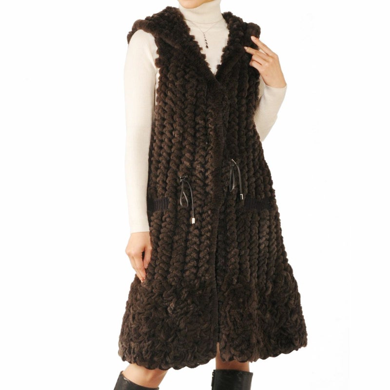 レッキス ロング ベスト 編み込み フード付 7F