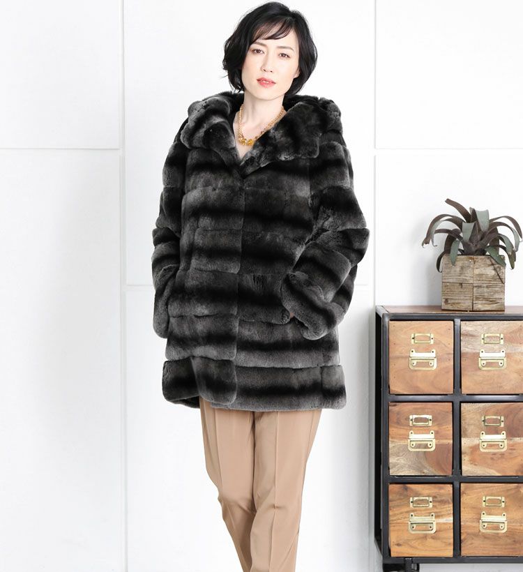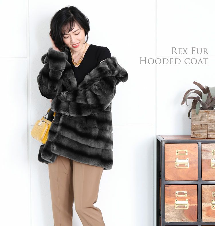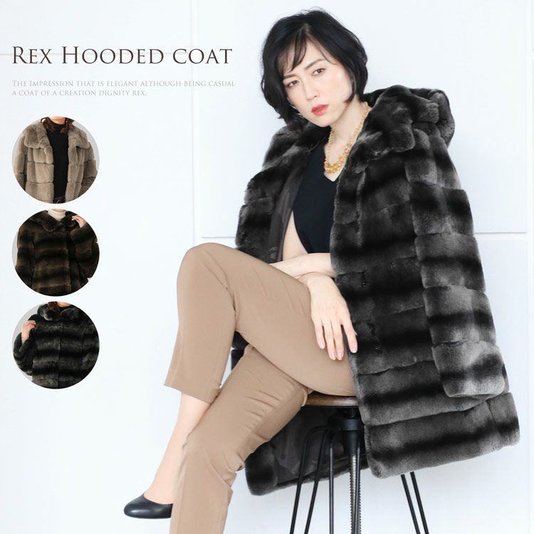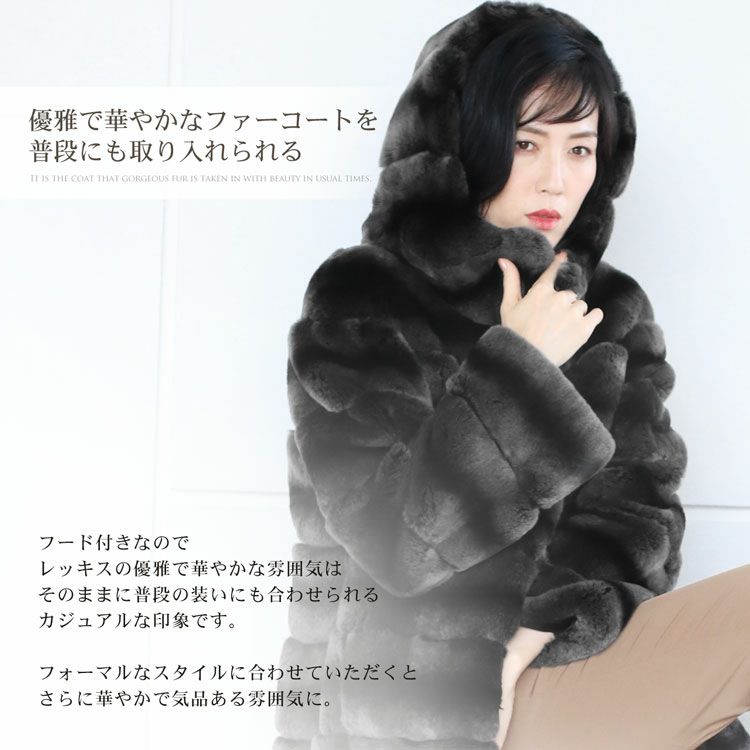 フード付きなので、レッキスの優雅で華やかな雰囲気はそのままに、普段の装いにも合わせられます。