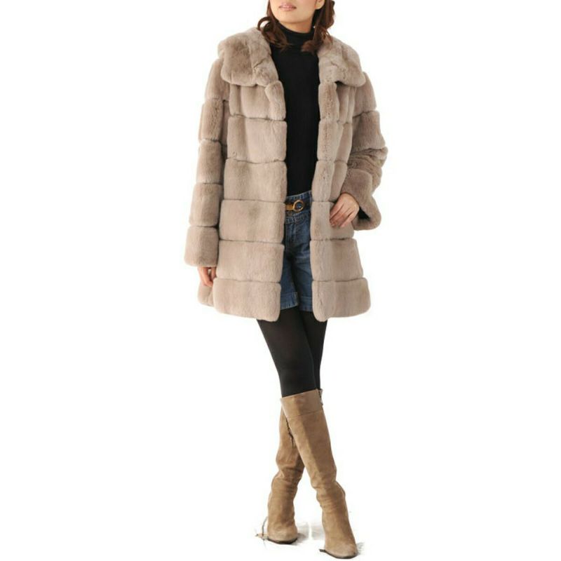 全身をふわりと包み込むファーコートなので後姿まで優雅で上品な雰囲気。