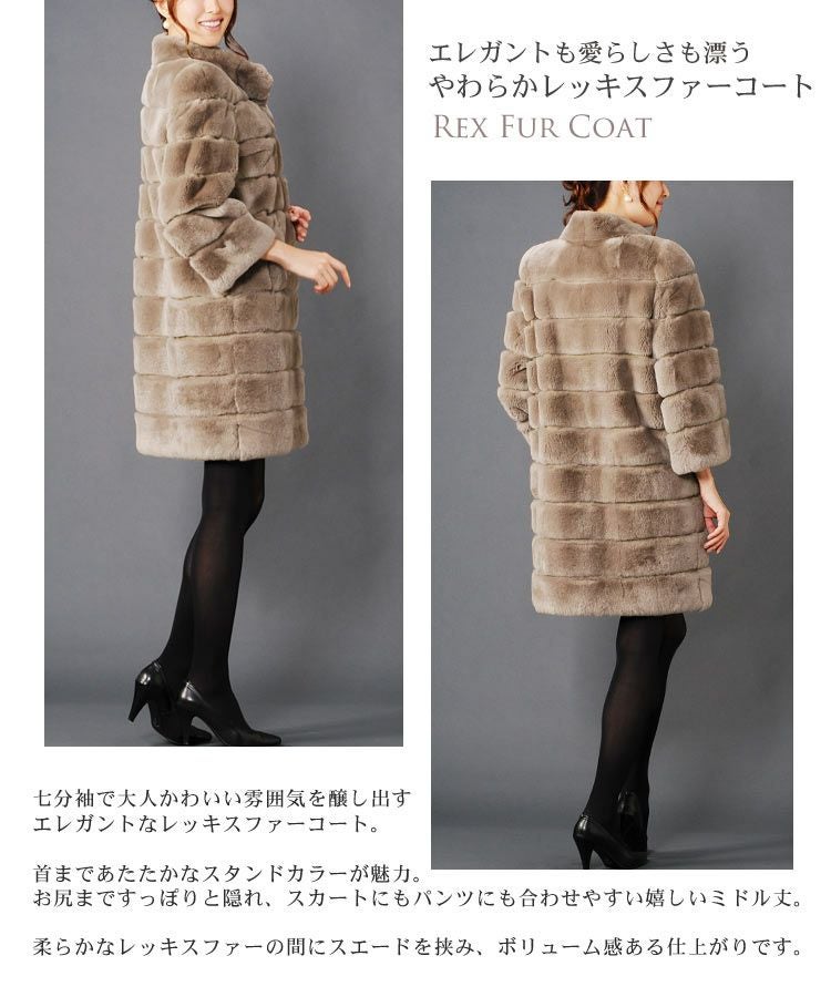 レッキス ファー コート 七分袖/レディース 毛皮 毛皮コート ファーコート ミドル丈 結婚式 フォーマル エレガント レディース 女性用 リアルファー 軽量 柔らかい 秋 冬 女性 プレゼント ギフト