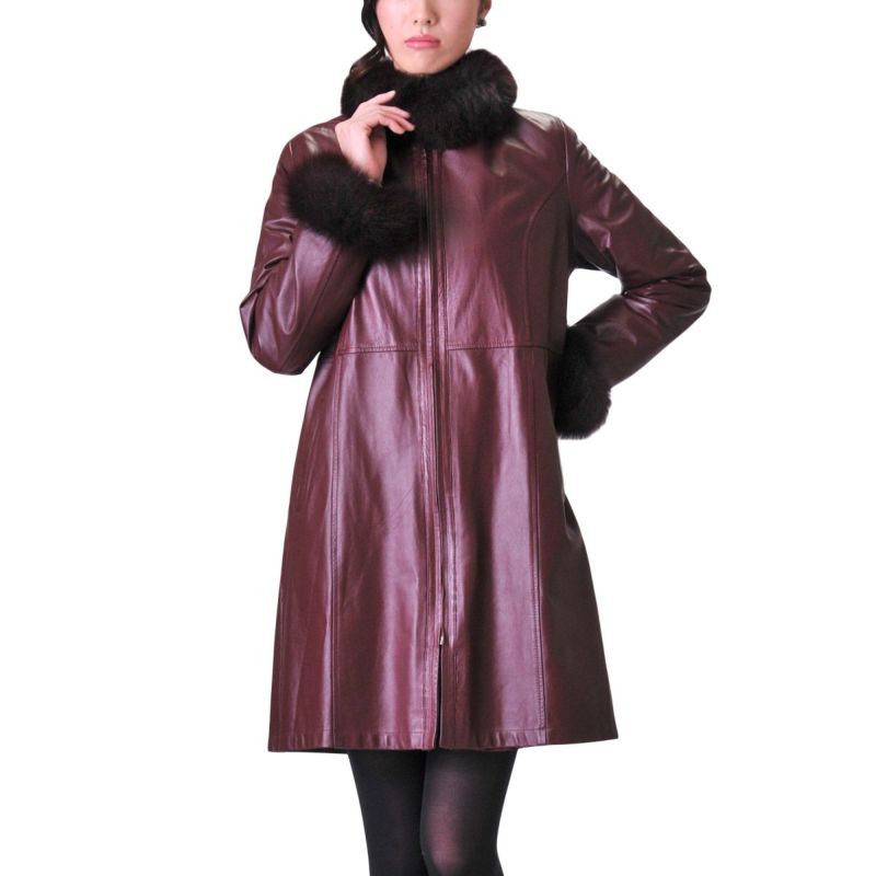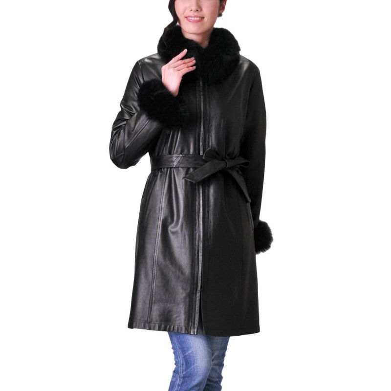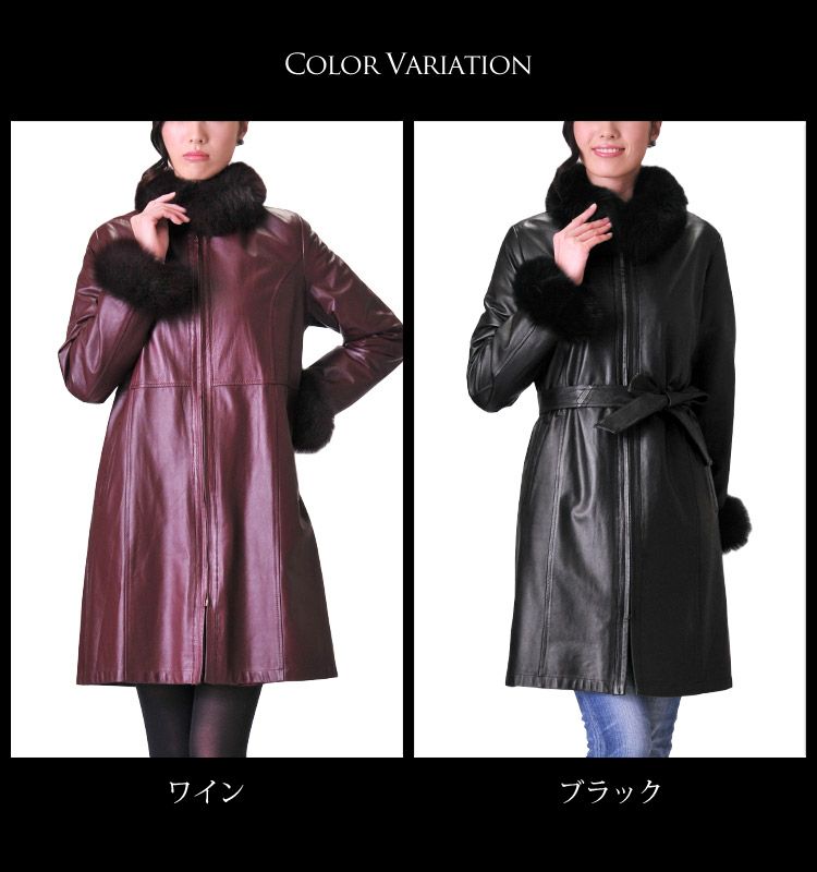 商品名:ラムレザー & レッキス ファー コート リバーシブル フォックス トリミング ロング 着丈90cm ブラック / レディース |