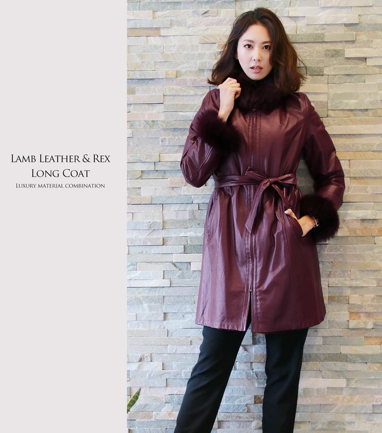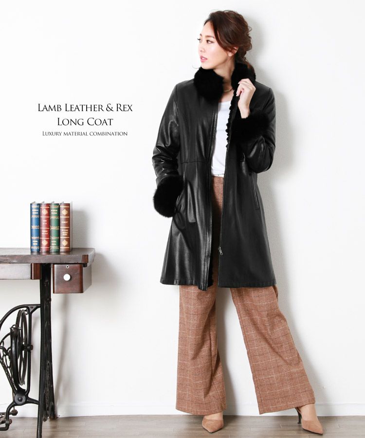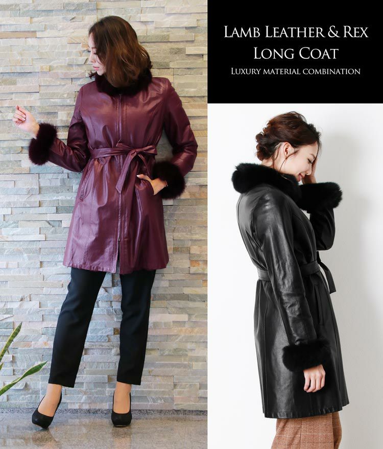 レザー コート レディース ラムレザー & レッキスファー リバーシブルコート 着丈90cm レディース ロングコート アウター ファー付きコート ファーコート レザーコート リアルファー 本革 革 秋 冬 ギフト