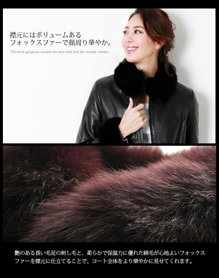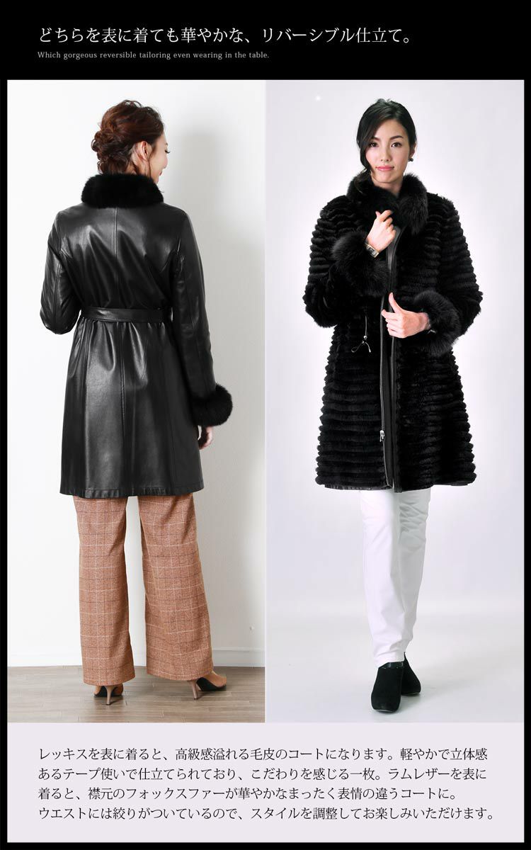 ラムレザー & レッキス ファー コート リバーシブル フォックス 着丈90cm / レディース 毛皮 ロングコート 7F