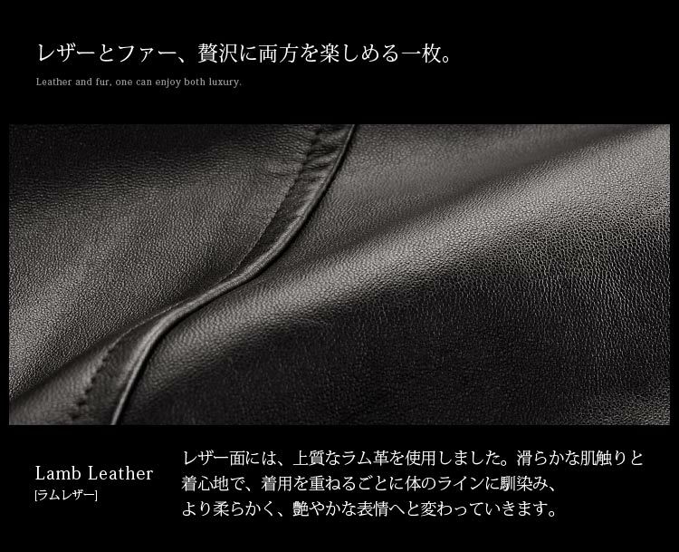 レザーとファー、贅沢に両方を楽しめる一枚。レザー面には滑らかな肌触りと着心地のラムレザーを、