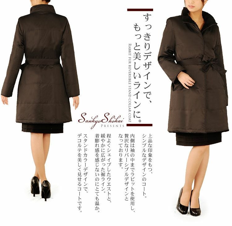 ラビット ファー リバーシブル コート スタンドカラー アウター 結婚式 ラビットファー 冬 毛皮 コート ブラック 秋 冬 母 女性 ギフト