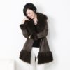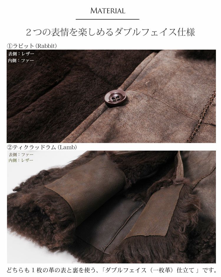 ラビット & ティクラッドラム ダブルフェイス レディース コート 毛皮 秋冬 ファーコート カーキブラウン/ダークブラウン/ブラック M/L プレゼント ギフト 母 女性 ギフト