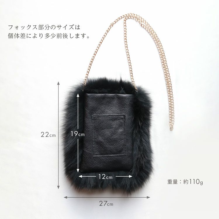 ふわふわのフォックスファーを使った、ボリュームたっぷりのミニショルダーバッグ。