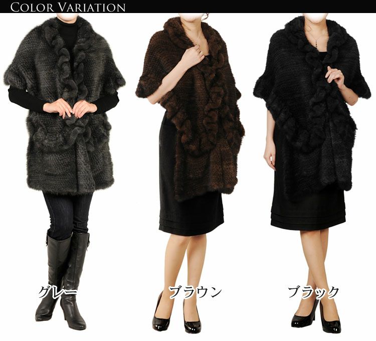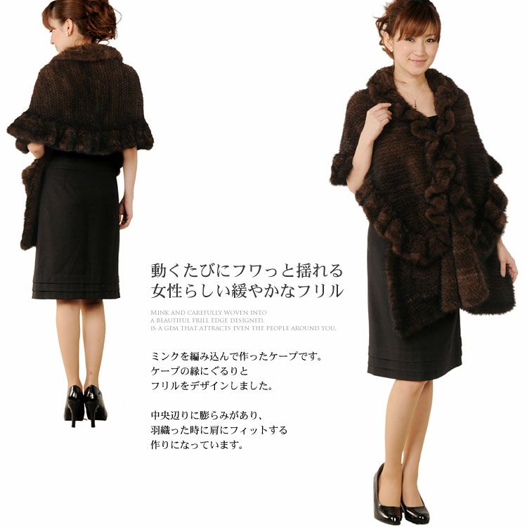| 商品名 | ミンク 編込み フリル ケープ(No.308091) |