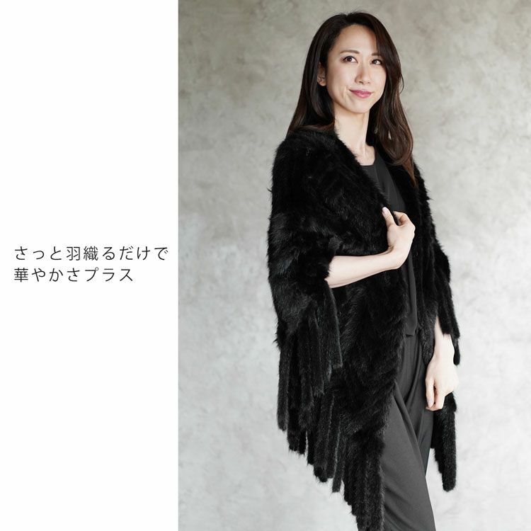 ミンク ファー ストール 編み込み 三角 フリンジ付き 大判 レディース (308096r) 7F