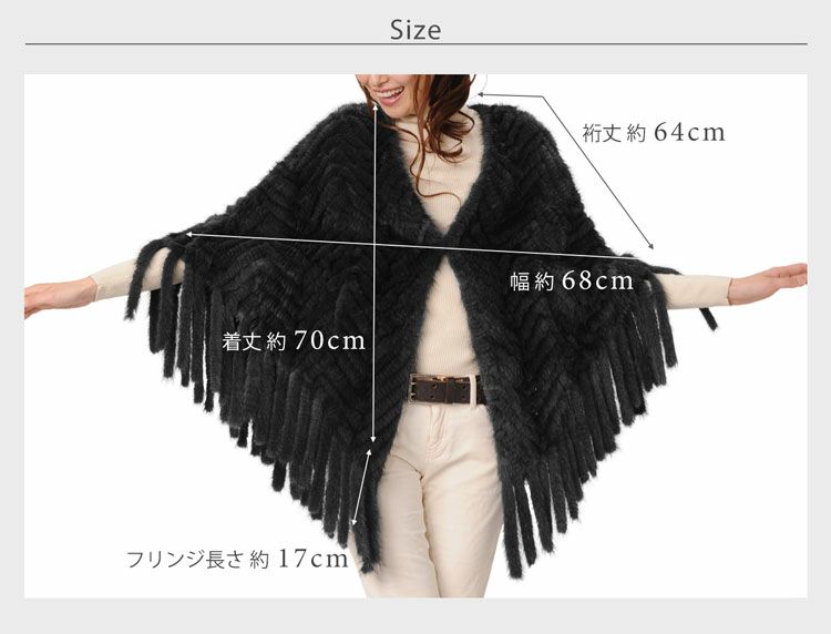| 商品名:ミンク 編み込み 三角ストール フリンジ付き / レディース |