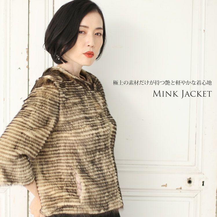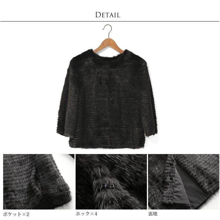 | 商品名:ミンク ファー ノーカラー ジャケット 七分袖 |