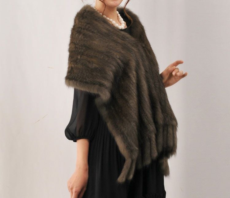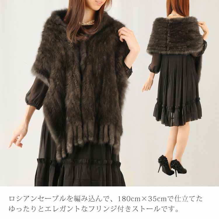 ロシアン セーブル ストール 編み込み フリンジデザイン (No.01000269) |