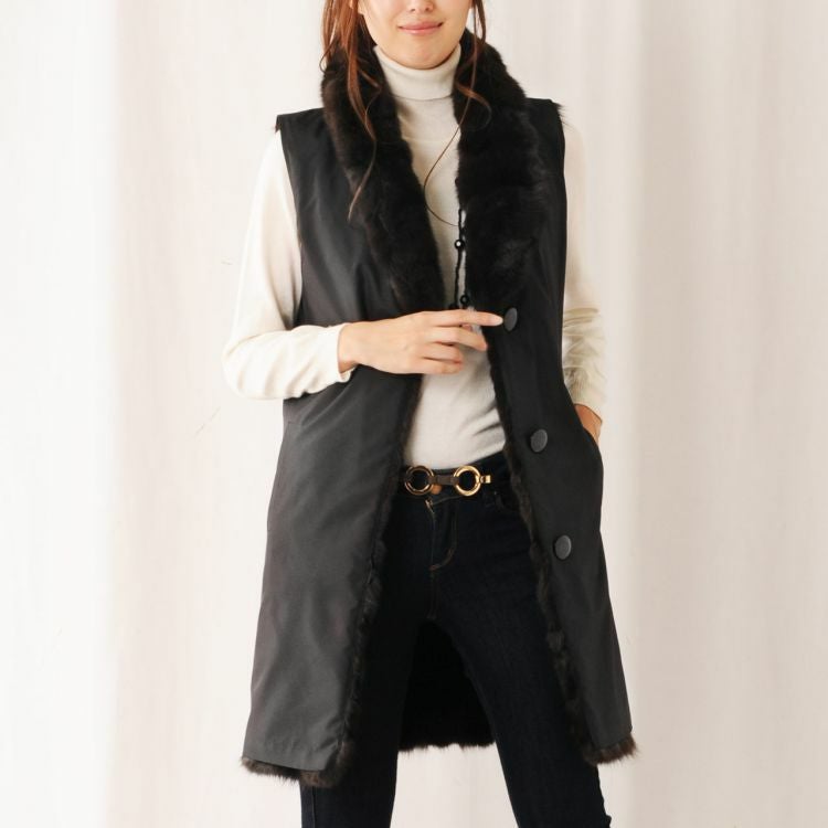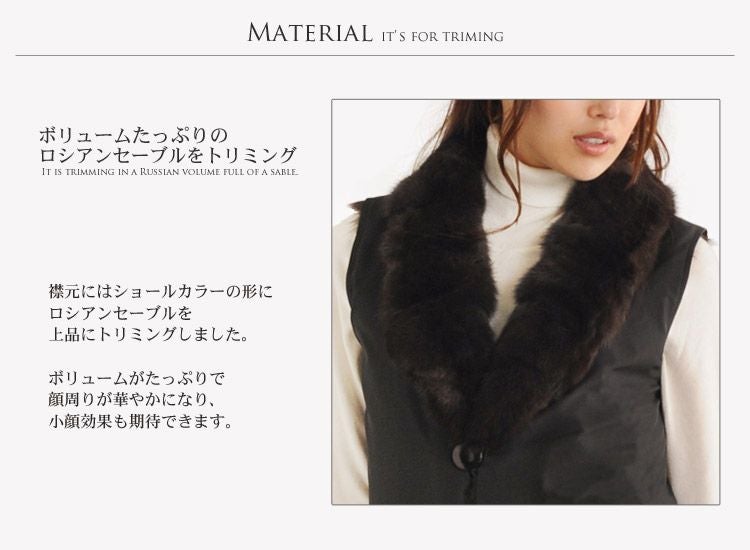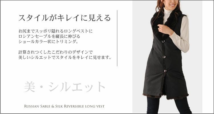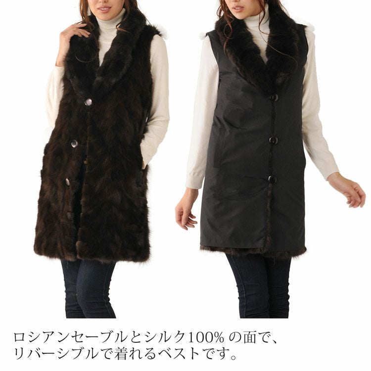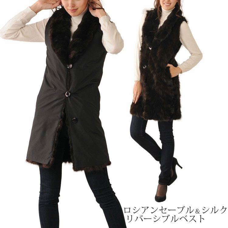 シルク 100% & ロシアン セーブル リバーシブル ロング ベスト 7F