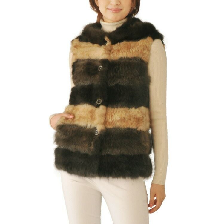 セーブル ベスト 編み込み デザイン フード付き 7F