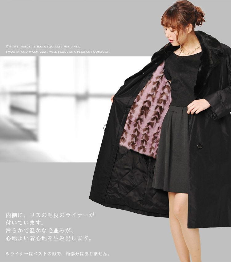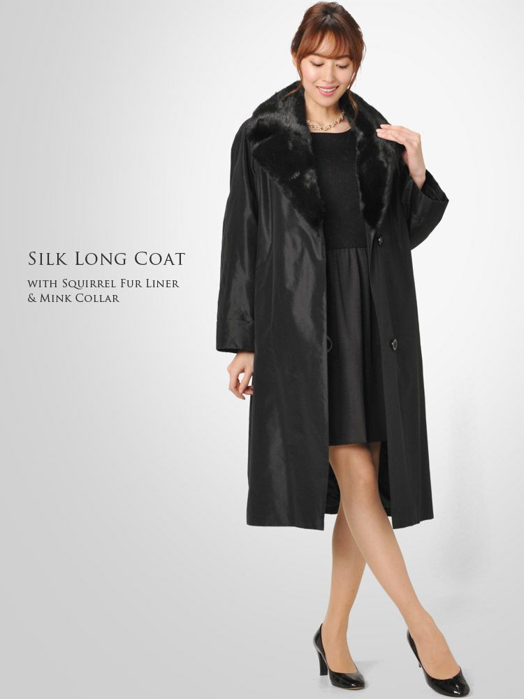 | 商品名:シルク100% ロングコート リスライナー付き ミンク襟 |