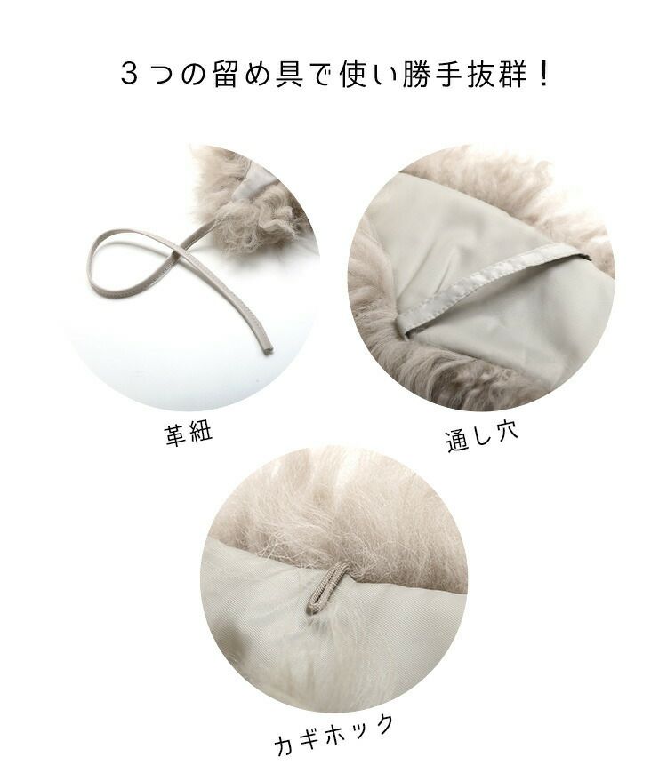 | 素材 | 毛皮:ラム 裏地:ポリエステル100% |