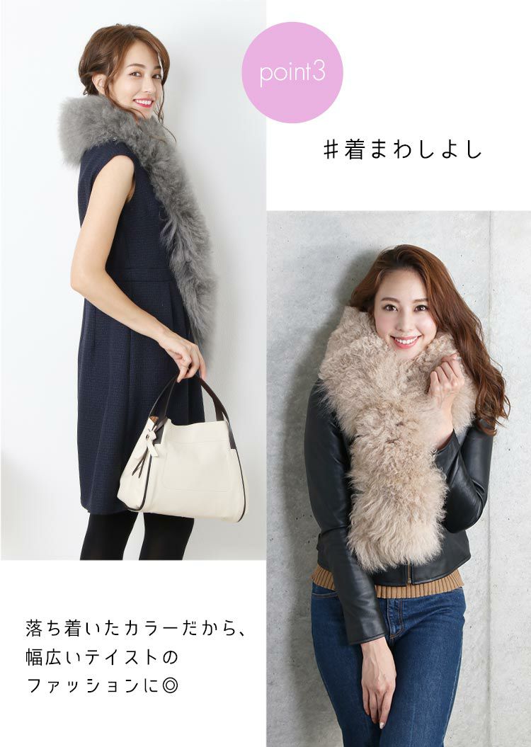 ラム ファー マフラー レディース 毛皮 ベージュ/グレー/ダークブラウン/ブラック 7F