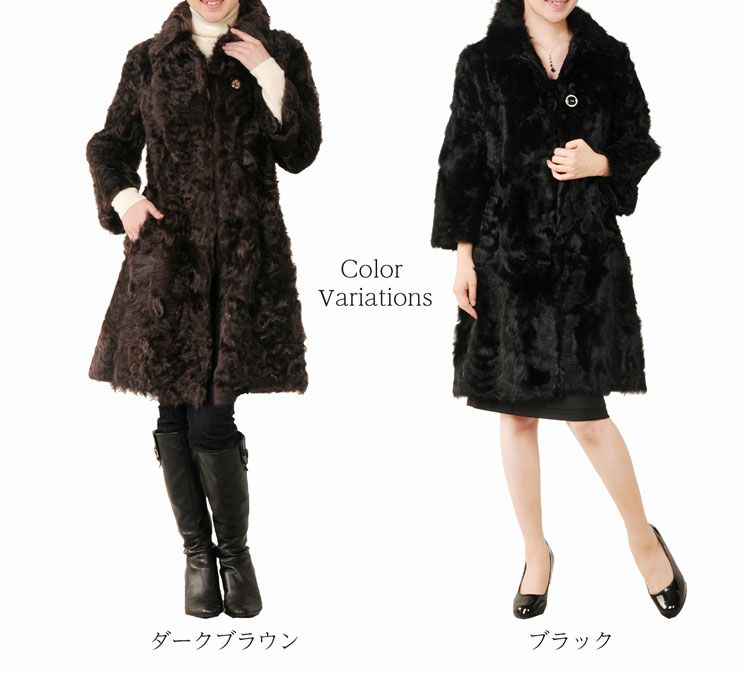 緩やかなウェーブが可愛く、華やかな印象のチキャンラムコート。光沢感があり、動きのある毛質が魅力のチキャンラムを贅沢に使用して仕立てています。柔らかな肌触りで着心地が良く、ウエストから裾に向かって緩やかに広がるAラインシルエットがとても女性らしい雰囲気の一着です。カジュアルスタイルからエレガンスなスタイルまで、幅広く使える汎用性抜群の暖かコートです。